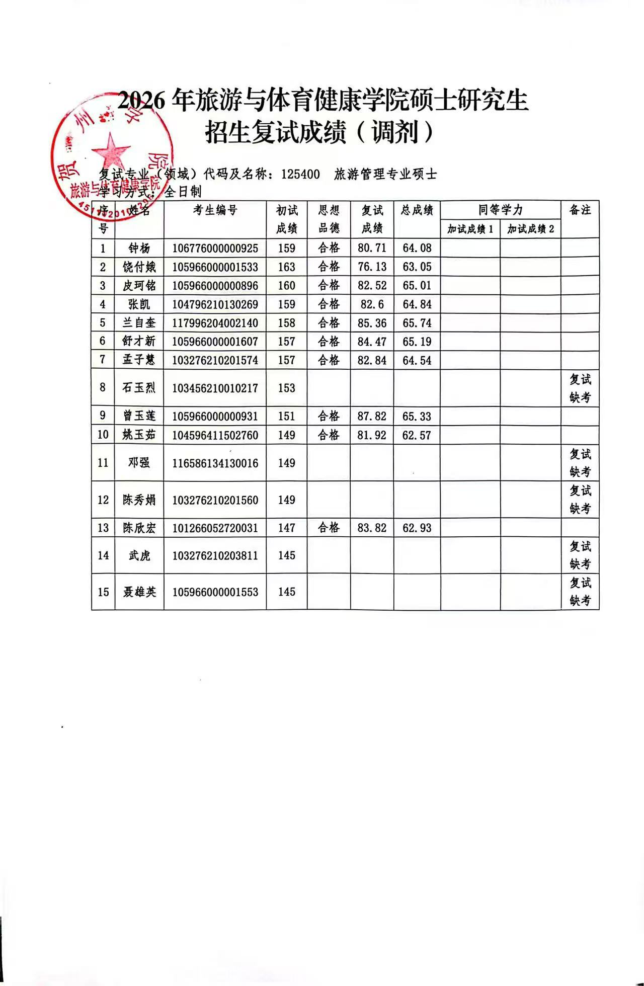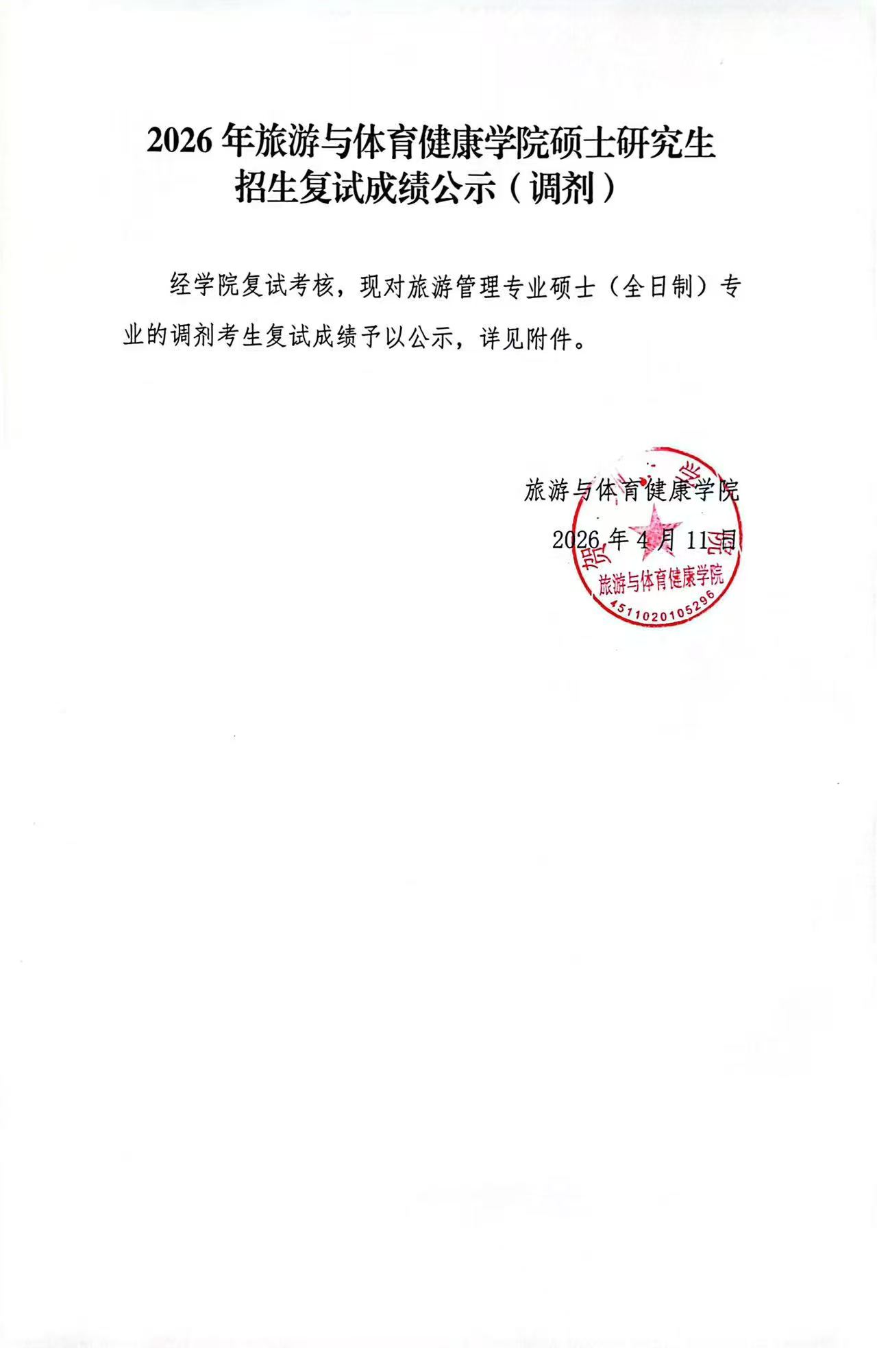 2026年旅游与体育健康学院MTA旅游管理专业硕士复试成绩公示(调剂)
